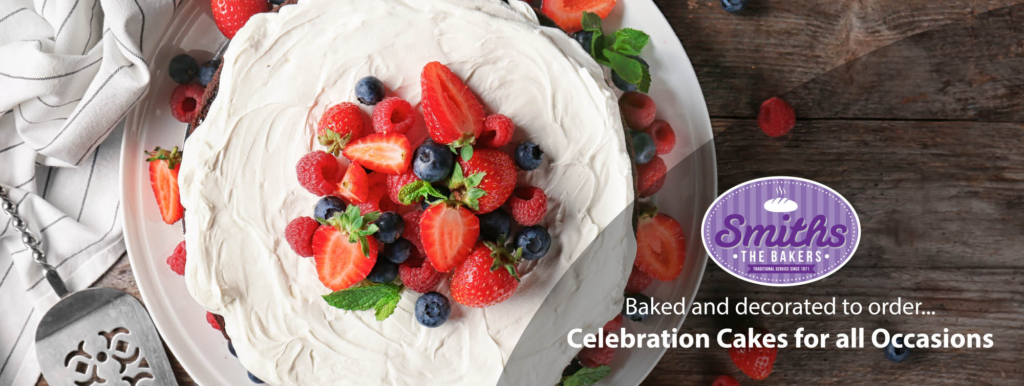 We offer personalised sponge cake or rich fruit cake celebration cakes. There are many options to choose from, for all occasions and for every budget.